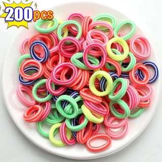 200pcs Vibrant Colorful Elastic Hair Bands for Girls & Women - Small Rubber Ponytail Holders for Stylish Hairstyles & Everyday